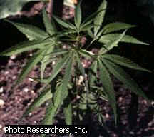 The leaves, flowers, and twigs of the plant are crushed to produce marijuana;